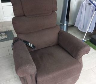 fauteuil relaxant électrique aspect velours ; 5 positions : assise , relevée , relax , repos , soutien des jambes