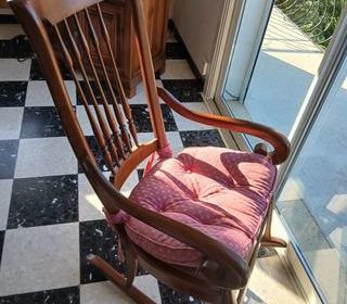 Rocking chair en chêne teinté merisier plus son coussin provençale sur mesure. Très bon état 95 euros