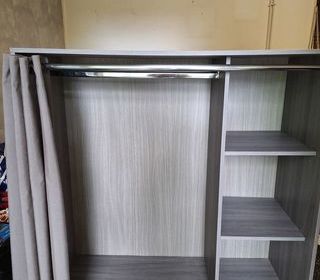 Vend petite penderie sur roulettes idéale chambre enfant Hauteur 120.5 cm Longueur 120 cm Profondeur 48 cm Si intéressé à récupérer sur place.