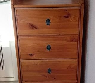 Meuble type commode / semainier / chiffonnier avec 5 tiroir en bois de pin. Hauteur hors tout 136 cm / Profondeur 48 cm / Largeur 48 cm. En très très bon état.
