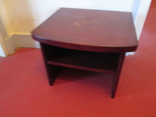 Petit meuble bas en bois marron foncé Avec une étagère intermédiaire au-dessous Hauteur totale : 30,5 cm Dimensions du plateau du haut : 40 x 36,5 cm Il est en bon état, quel