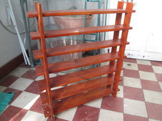 Etagère en bois (a été vernis) avec 7 niveaux superposés. Idéal pour ranger de petits pots à épices par exemple, ou exposer des objets décoratifs. Hauteur totale : 70 cm Largeur
