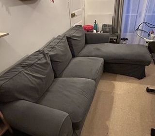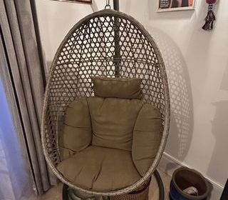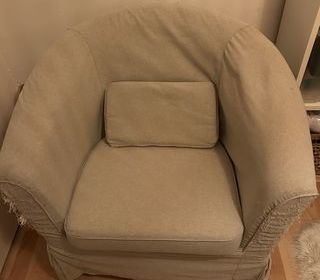 fauteuil relaxe pivotant, tissu gris, quasi neuf , acheté il y a trois mois. pas d'envoi