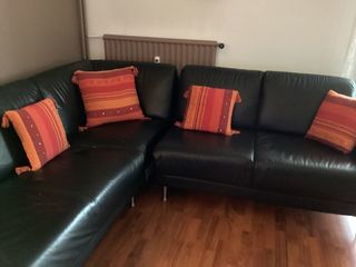 Je vends un Canapé d'angle en cuir IKEA, non convertible. Vendu avec 5 coussins (4 petits et un grand modèle) MAISONS du MONDE Canapé en 2 parties, plus facilement transportable.