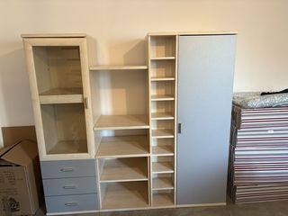 Armoire pour chambre ou bureau couleur : gris et bois clair 4 modules, dans l'ordre 45 cm - 22 cm - 45 cm - 45 cm- longueur totale 157 cm Hauteur 150