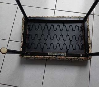 RETRAIT Courdimanche/E. (91) - 6 chaises tapissées en chêne, clous, pieds de mouton, hauteur 110 cm, assise 45 x 45 cm, épaisseur 8 cm, ressorts, hauteur dossier 66 cm, largeur 42