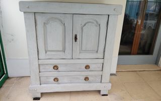 Joli meuble, type buffet bas Deux petits tiroirs sur les côtés Deux étages à l'intérieur Hauteur : 80 cm Longueur : 107 cm Largeur : 50 cm Très bon état, quelques tra