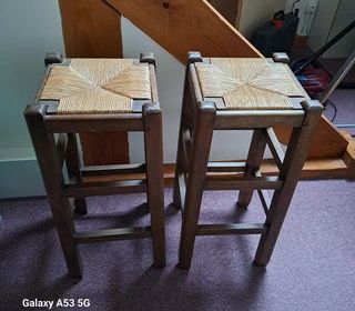 Je vends 2 tabourets de bar en bois en bon état ayant très peu servi dont les dimensions sont les suivantes: assise 30cm X 30cm hauteur 70 cm Le matériel sera a récupérer à mon