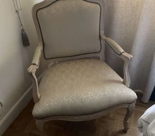 Vends 2 beaux fauteuils cuir vachette écru en bon état. Coussins démontables. Dimensions : L98 cm H50 cm P86cm