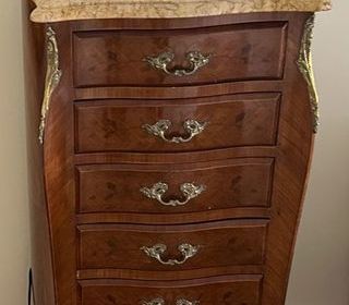 Élégant bureau en hêtre, 1 grand tiroir pour dossiers suspendus, 2 tiroirs classiques, 2 tablettes amovibles pour petits matériel d'écriture (stylo, crayon, gomme, etc? Dim. burea