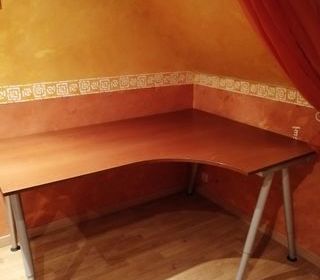 Bureau IKEA en parfait état, longueur 160, largeur grand côté 120 et petit côté 80 cm, pieds réglables.
