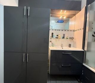 Vente cause déménagement, lot de 3 meubles IKEA gris pour salle de bain avec portes dont meuble sous vasque.
