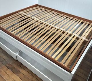 Suite à mon prochain déménagement je mets en vente mon mobilier. Pour cette annonce: Un lit de 1,60 x 2 mètres Avec 4 tiroirs de rangement en dessous, robuste et pratique. Je