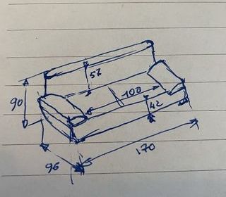 Canapé 2 places , confortable, long 1,60 cm, coussin fermeture éclair intérieure. 4 pieds bois. Enlèvement par vos soins. Prix 70 €