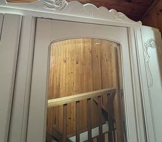 belle armoire ancienne 3 portes avec miroir central. Etagères profondeur 34 cm en une seule pièce sur toute la longueur hauteur 193 largeur 147