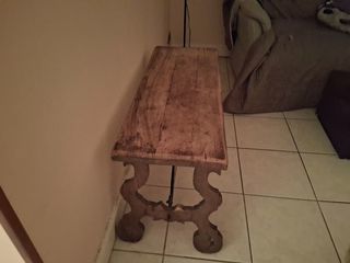 Table basse en bois et fer forgé un peu abîmée en dessous
