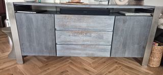 Bonjour, Je vends mon banc Tv BESTA brun noir Ikea. Il est en bon état, seulement un petit choc sur le dessus que vous pouvez voir en photo. Possibilité de vous le ramener à votr