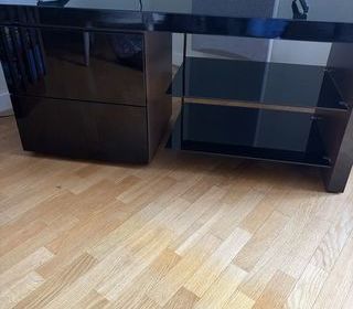 À vendre meuble de télé en verre très bon état Dim:longueur 110 cm profondeur 42 cm Hauteur 50 cm