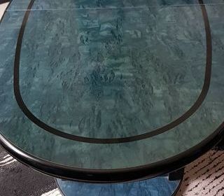 Table basse bar bleu marbré et noir en bois bon état 110x62
