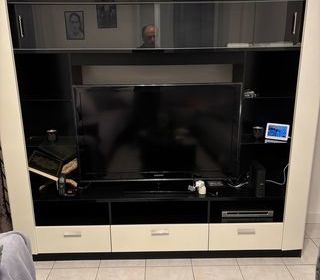 Meuble télé Longueur 170cm Hauteur 45cm largeur 40cm. Quelques écorchures comme sur les photos. Meuble avec 2 tiroirs.