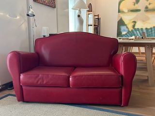 CANAPÉ Club CUIR ROUGE BON ÉTAT DIMENSIONS / Largeur :2,40 m Profondeur : 0,90 m Hauteur : 0,90 m À RETIRER SUR PLACE RÈGLEMENT EN ESPÈCES