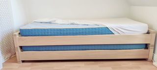 Pack lits gigognes + 2 matelas couleur bois Dimension : 90 x 200