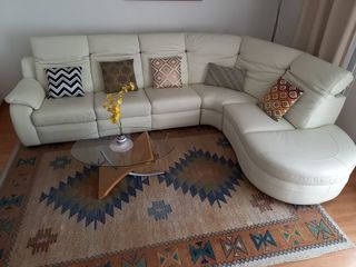Etat : très bon Vends cause déménagement un magnifique canapé d'angle 6 places avec appui-têtes modulables et fauteuil relax manuel. Haut de gamme, tout cuir vachette et robuste.