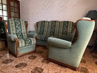 Ensemble de salon de chez Mobilier de France comprenant : 1 Canapé 3 places Largeur :185 cm Hauteur :105 cm Profondeur :95 cm et 2 Fauteuils : Largeur :80 cm Hauteur 10