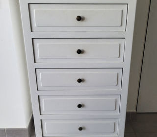 Je vends ce semainier en bois blanc avec plateau en bois foncé. Pratique et élégant, il offre un rangement organisé pour vos affaires du quotidien ! 61 x 35 x 100 - Type de p