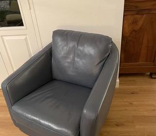Paire de fauteuils en cuir bleu foncé , pivotant à 360*! Excellent état. Très confortables, moelleux et ferme. Peu encombrants ( cube de 75 cms d'arête).