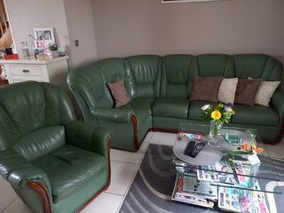 Vends canapé d'angle 5 places plus 1 fauteuil mase 35kg assise et 25 kg dos cuir vachette pleine prix neuf 3000€