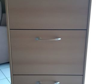 A Vendre beau meuble à chaussures en Parfait état, de 0m57 de Largeur x 1m12 de Hauteur x 0m29 de Profondeur, Couleur imitation hêtre, 3 tiroirs. Prix 30,00€, l'ensemble, retrait s