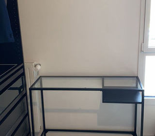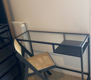 Bureau Ikea en excellent état, très peu utilisée. Prix neuf : 59,99 € (voir dernière photo). Vente uniquement. Paiement en espèce ou par virement/wero sur place chez moi. Pas