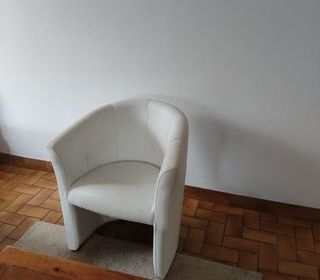 Pouf blanc pouvant servir dans une entrée. Cause manque de place.