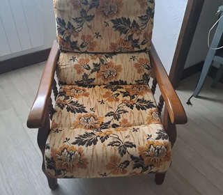 Fauteuil en bois avec accoudoirs , dossier et assise tissus en état neuf. Très bon état.