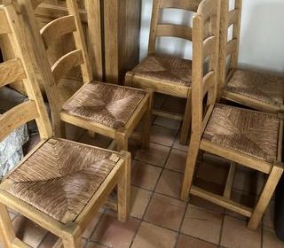 Vends cause déménagement Meubles salle à manger rustique comprenant : - 1 buffet en chêne massif et placage sur les côtés Avec vitrine, bar en abattant et 2 tiroirs Longueur 230