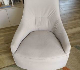 Fauteuil pivotant "CHATEAU d'AX" en tissu gris - dimension 72 x 100 x 92. Bon état.