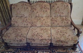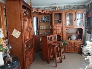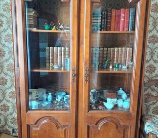 vends suite à décès : table de salle à manger avec chaises en merisier massif, avec plateau en verre, et rallonge, 4 chaises cannées en merisier également pied en hêtre massif pr