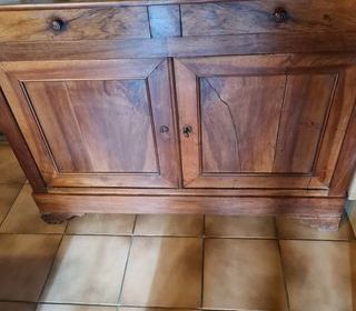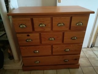 vends suite à décès : meuble en pin maritime massif avec tiroirs poignées en laiton, sauf fond en contreplaqué - L91P47H90 finition teinte naturelle colorée, 2 couches de vernis