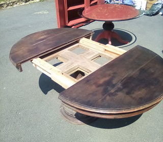 Vends table acajou 6pieds , avec 2 rallonges diamètre 123 cms ,bon état, acheté chez un antiquaire (facture)
