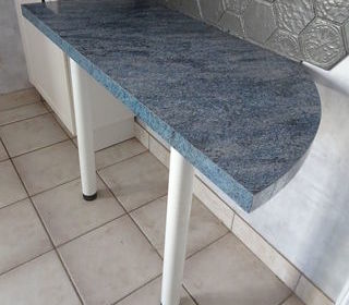 Plans de travail -table d'appoint 2 plans de travail d'appoint d'épaisseur 4 cm pouvant être réunis et servir de table adossée à un mur avec la partie ronde rabattable.