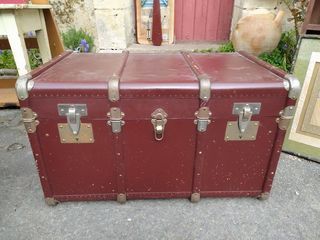 Ancienne Grande Malle de Voyage Longueur 79cm, largeur 49cm, hauteur 47cm. Excellent état, intérieur avec son revêtement papier en très bon état. Le prix n'est pas négoc