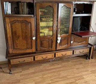 Vends buffet de salle à manger en chêne massif. Très bon état, deux portes, quatre tiroirs et niches.