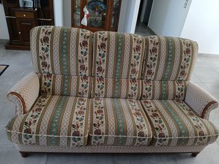 Dans le cadre d'un vide maison, vends canapé 3 places convertible bois / tissus en bon état. Couchage d'appoint 104 X 190. L : 175cm, H : 95cm, P : 80cm D'autres meubles disponi