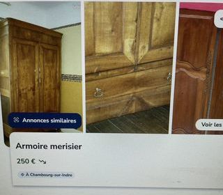 VENDS ARMOIRE MEURISIER EN TRES BON ETAT AVEC GRAND TIROIR EN BAS ET UN AUTRE A L'INTERIEUR LES DIMENSIONS SONT HAUTEUR AVEC CORNICHE 2.30 M LARGEUR 1.28CM PLUS CORNICHE 8 CM
