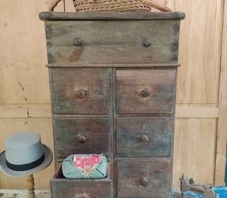 Ancien Petit Meuble de Rangement à Tiroirs Casiers Plateau relevable Hauteur 70cm, largeur 37,5cm, profondeur 28cm. Bon état