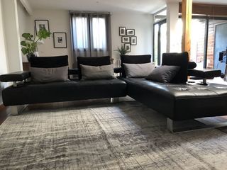 Je vends 4 chaises de bar assorties avec assise en cuir de veau véritable et structure en métal noir. Les chaises sont d'occasion et présentent une belle patine naturelle liée à