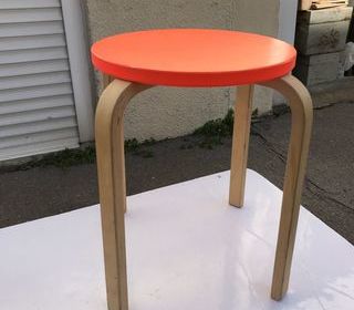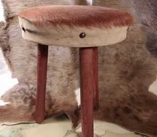 Tabouret Bois et Cuir Peau de Vache Vintage Style Scandinave. Hauteur 35cm, diamètre 25cm. Très bon état Déco, Loft, Industrielle, Industriel, Design