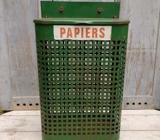 Corbeille à Papier de Jardin Public Vintage Hauteur 58cm, largeur 34cm, profondeur 19cm Bon état , présence de corrosion sur le fond