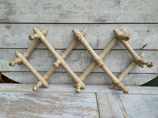 Ancien Porte Manteau Pliant Mural Style Bambou 1900. Patine Gris/ Beige Dimension totalement déplié Longueur 97cm, hauteur 22cm. Dimension intermédiaire Longueur 73cm, hauteu